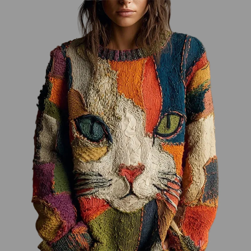 ✔︎ Unique artistic design – Patchwork cat face, ideal for a creative and original look.
